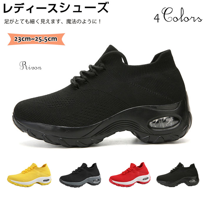 疲れない 歩きやすい 靴 ウォーキングシューズ おしゃれ 運動靴 ハイヒール ストレッチ 23-25.5