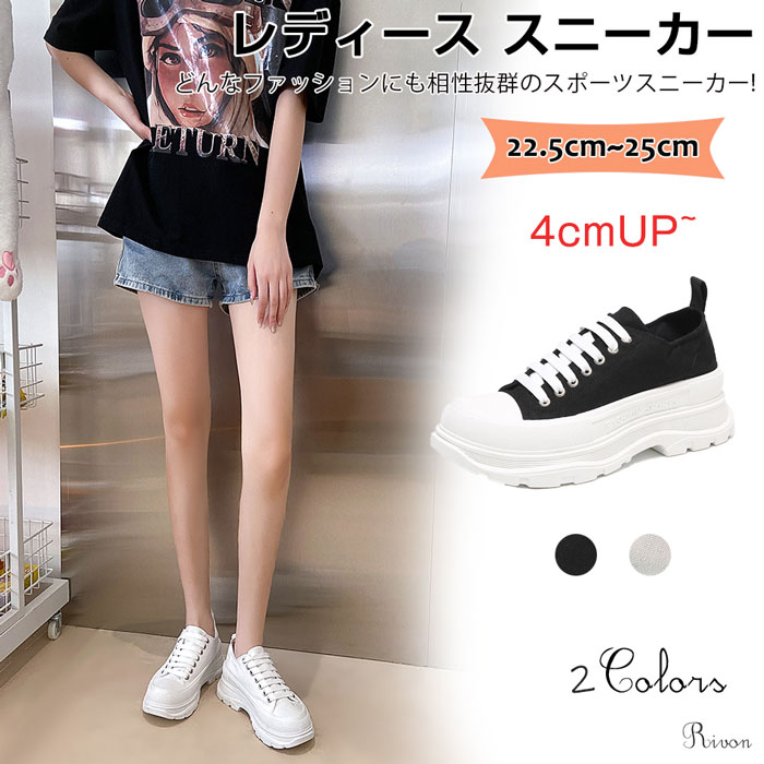 程よい高さの4cm厚底タイプでシンプルデザインだからコーディネートも自由自在 靴 レディース靴 スニーカー