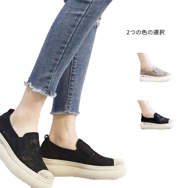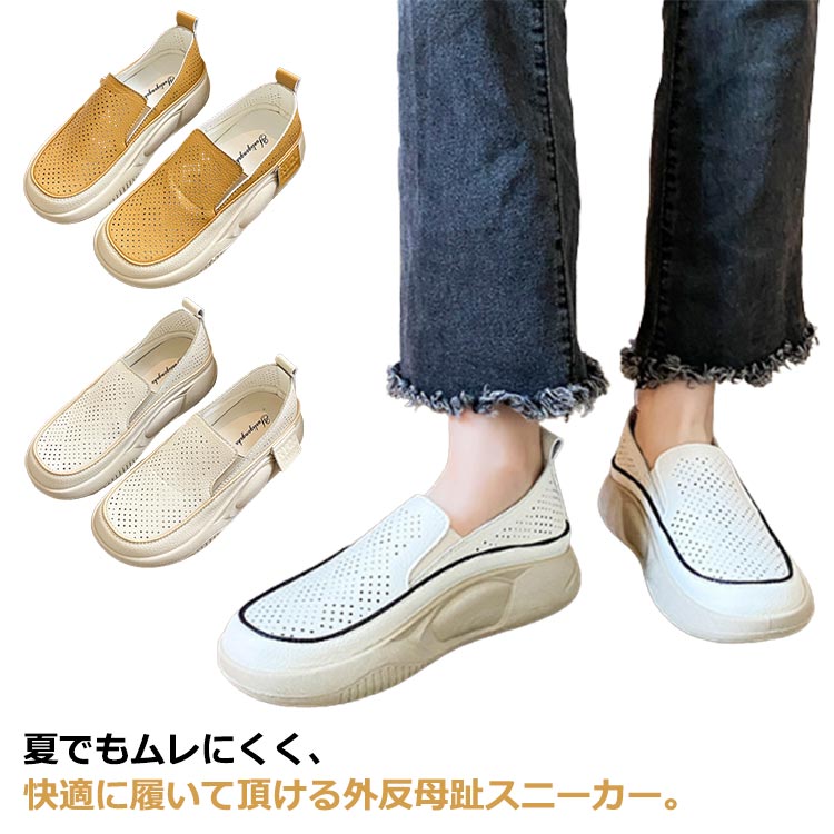 外反母趾でもスイスイ歩ける♪ 春夏 外反母趾 通気性 スニーカー ヒール3.5 お出かけ 旅行 厚底スニーカー 通学 通勤 厚底スリッポン