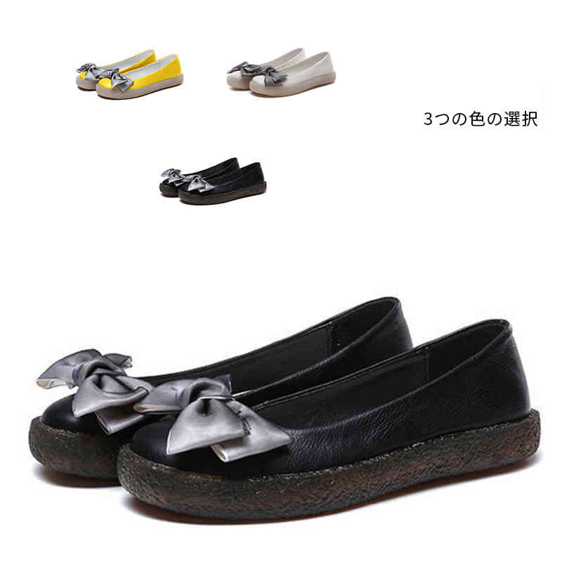 ぺたんこ 婦人靴 柔らかい リボンシューズ おしゃれシューズ 履きやすい すべり止め 痛くない パンプス