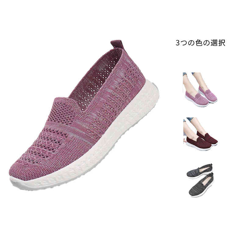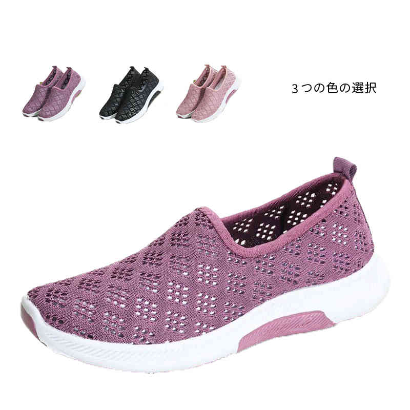 レディース スニーカー 靴 軽量 軽い メッシュシューズ ウォキングシューズ ナースシューズ 紐なし
