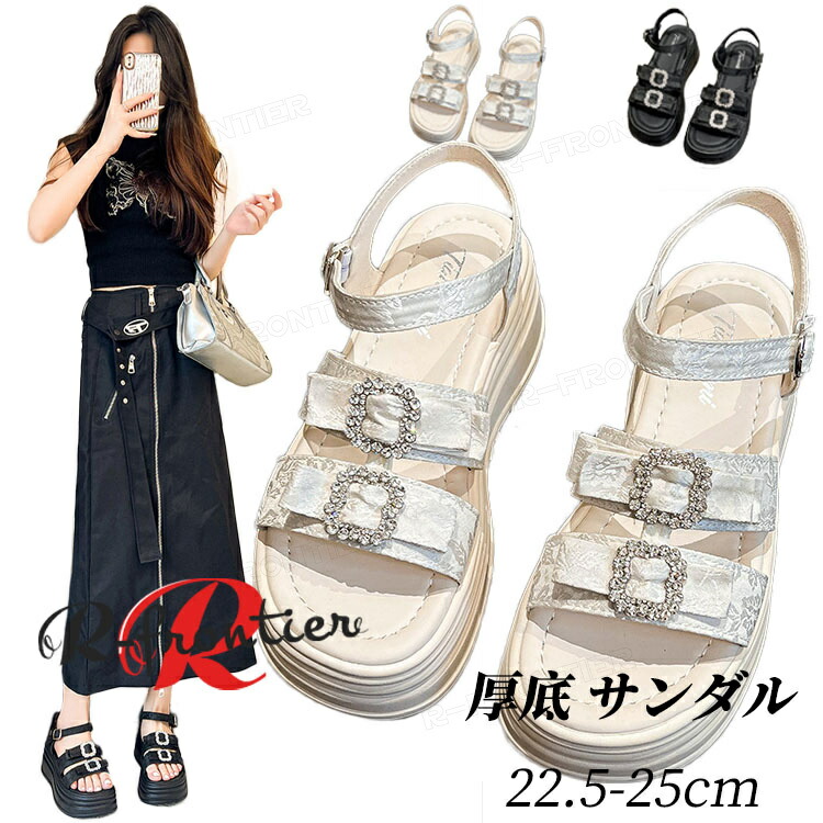 厚底スポーツサンダル キラキラ サンダル クリスタル 厚底 歩きやすい サンダルスニーカー 身長アップ 美脚シューズ