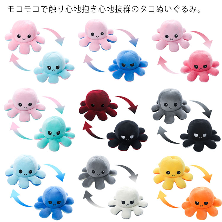 カラフル全17色展開 かわいいリバーシブルタコのぬいぐるみ 抱き心地抜群おもちゃ ぬいぐるみ 人形 ぬいぐるみ