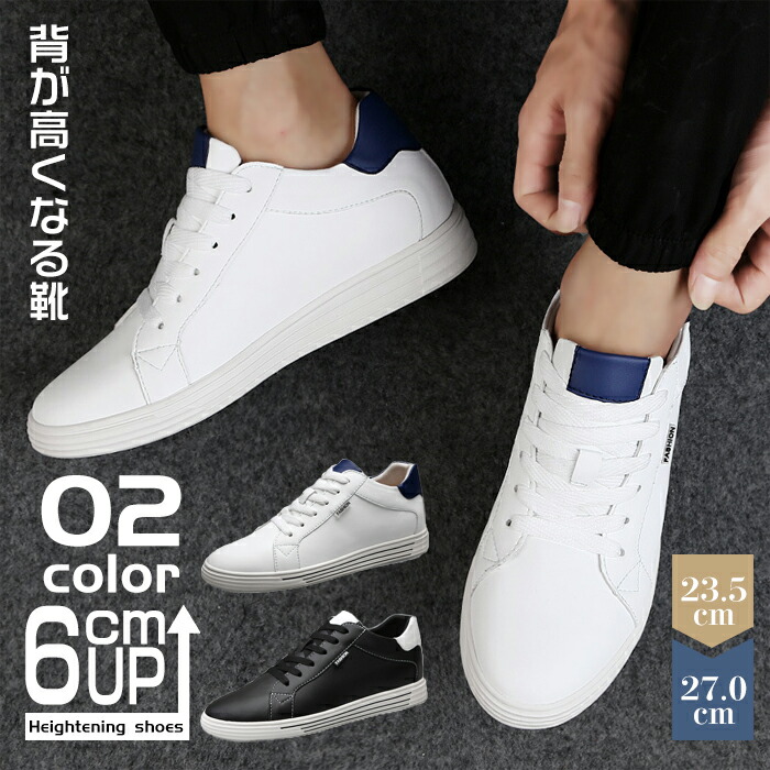 メンズ スニーカー シークレットシューズ 靴 6 本革 厚底 ローカット 白 通勤 通学 背が高くなる 大きいサイズ カジュアル靴 父の日 ギフト