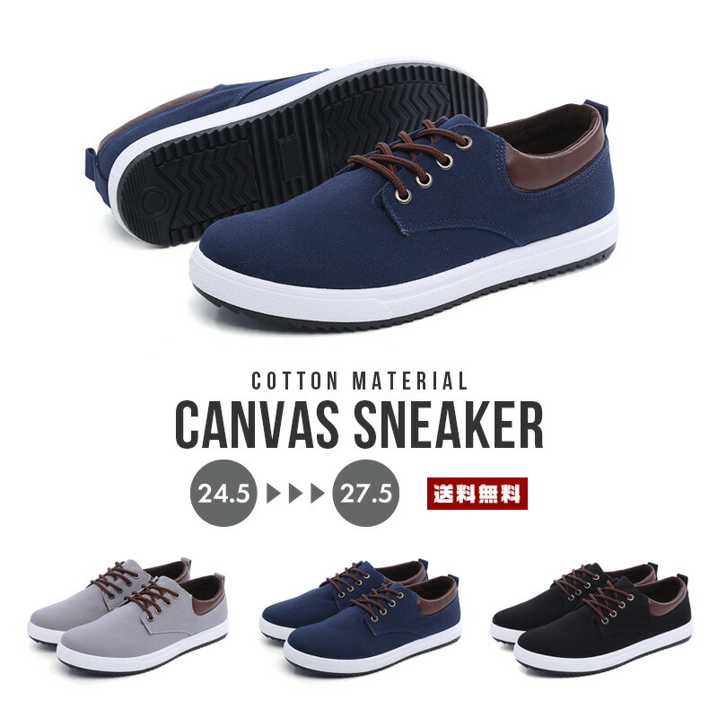 メンズ キャンバス スニーカー【メンズシューズ 靴 レースアップ デッキ 紐靴 運動靴 デニム 綿 布 バイカラー シンプル カジュアル 軽量 軽い クッション ラバー 防滑 男性 紳士 コスパ ネイ