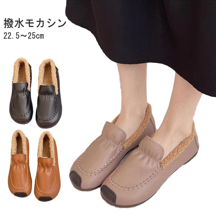 レディース 内ボア 撥水モカシン スリッポン シューズ 靴 疲れない 大きいサイズ ルームシューズ ぺたんこ フラット 防寒 スリッポン スリッパ