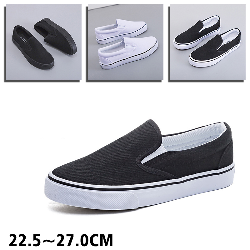 スリッポン スニーカー メンズ レディース デッキシューズ 無地 黒 白 シンプル キャンバス カジュアル オフィス 室内 通勤