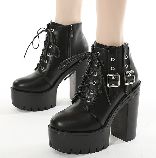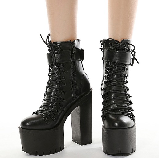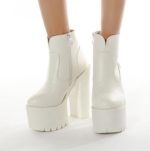 ブーツ 切り替え 太いヒール 厚底 無地 原宿系ファッション 韓国風 ダンス衣装 カワ 個性 奇抜 かわいい 青文字系 美足 脚長 シューズ 靴 レディース 女