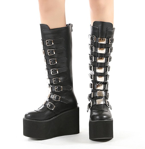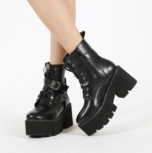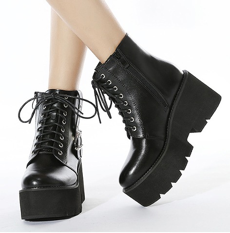 ブーツ 切り替え 厚底 無地 系 原宿系ファッション 韓国風 ダンス衣装 カワ 個性 奇抜 かわいい 青文字系 美足 脚長 シューズ 靴 レディース 女
