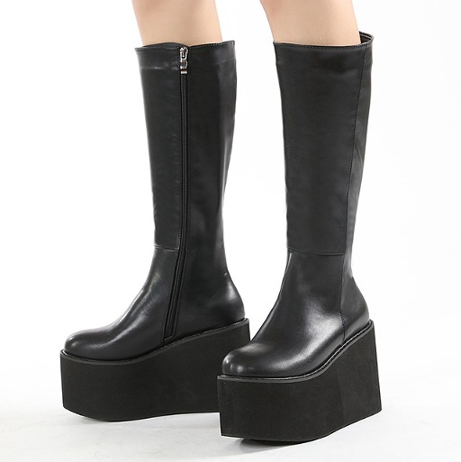 ブーツ 厚底 切り替え 無地 系 原宿系ファッション 韓国風 ダンス衣装 カワ 個性 奇抜 かわいい 青文字系 美足 脚長 シューズ 靴 レディース 女