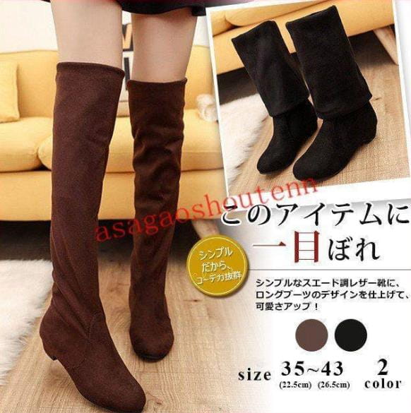 ロングブーツ レディース ニーハイブーツ 2 無地 ローヒール 厚底 美脚 カジュアル おしゃれ 歩きやすい スエード調 全2色 大きいサイズ