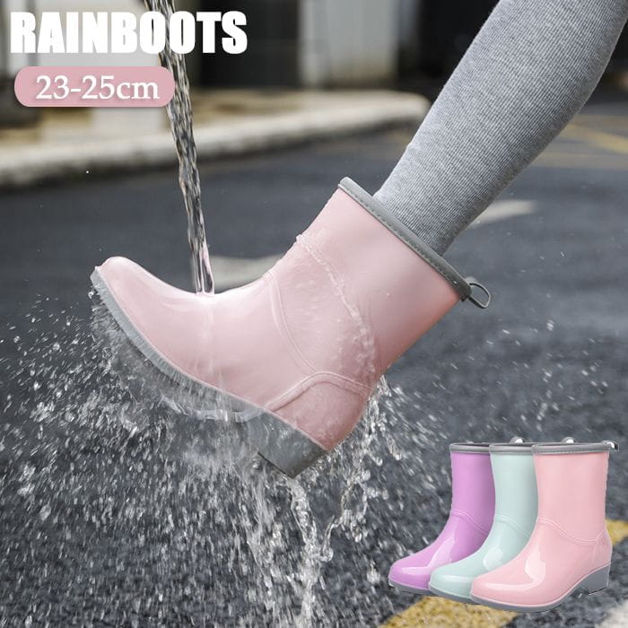 防水 レインブーツ レディース おしゃれ ロング丈 ミドル丈 長靴 軽量 柔らかい きれいめ 滑りにくい 無地 雨靴 3色 防水 農作業 園芸 ブーツ 作業 シンプル カジュアル ピンク パープル グ