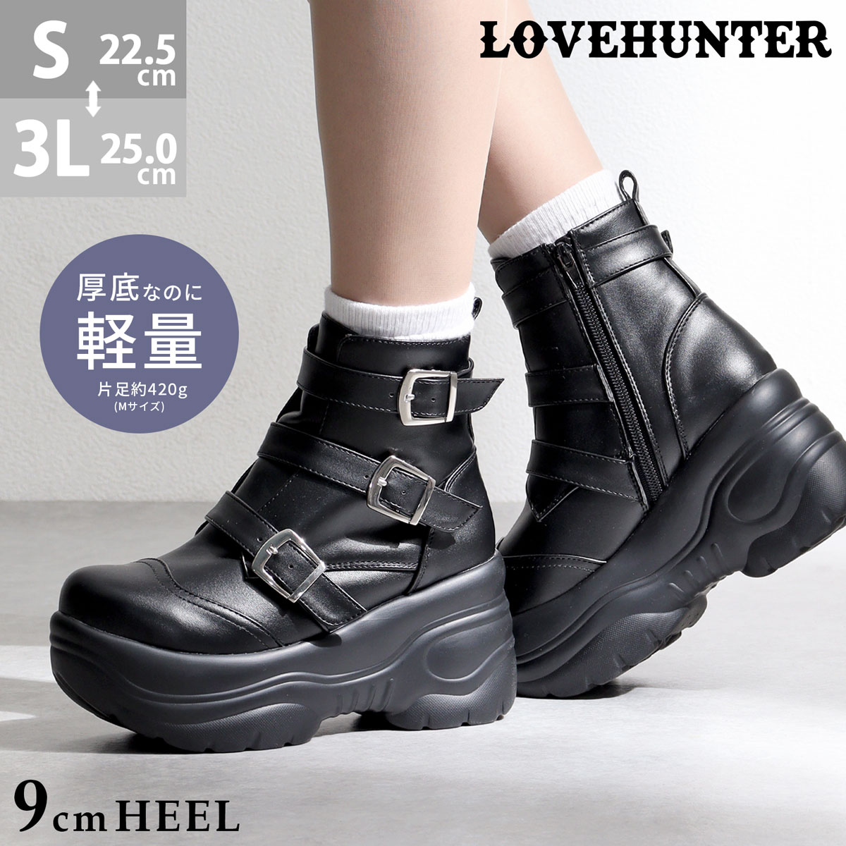 厚底ブーツ レディース 着脱簡単 靴 9センチヒール スニーカーソール おしゃれ かっこいい 韓国 地雷系 脚長 学生 高校生 10代 20代 30代