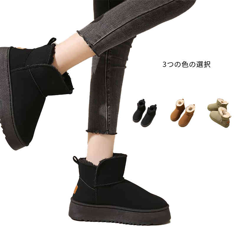 レディース 軽量 厚底 ムートンブーツ 疲れない 痛くない ショート ファー ボア 防寒 厚底 ショートブーツ