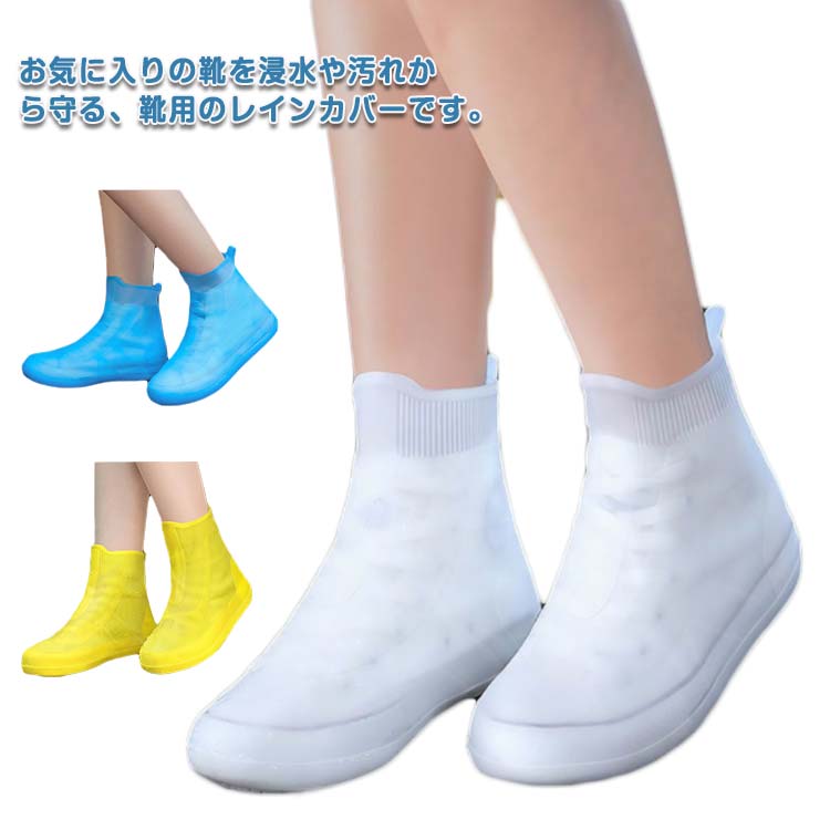 レインシューズカバー シューズカバー シリコン カバー ブルー 靴 キッズ 靴 雨 雪 汚れ防止 ホワイト イエロー グレー 防水