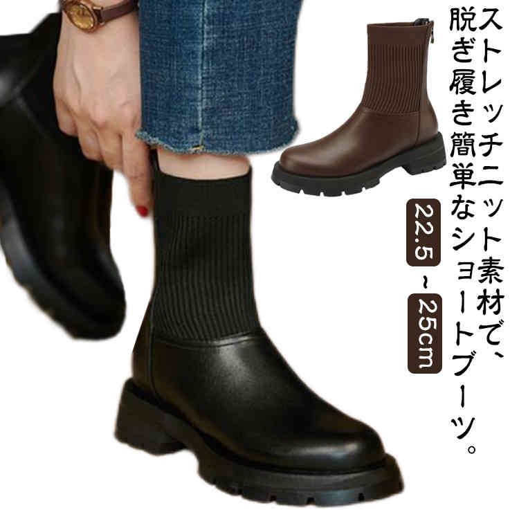シューズ ニットソックスブーツ 秋冬ショートブーツ レディースアンクルブーツ 秋冬ショートブーツ 厚底 疲れない 楽ちんショートブーツ レディースブーツ 美脚レディースブーツ 韓国ブーツ 大人カジュア