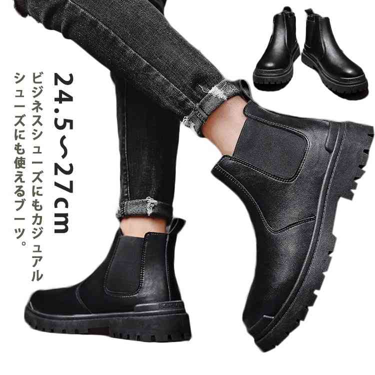 サイドゴアブーツ 大きいサイズ メンズ 撥水加工 黒 革靴 カジュアルブーツ サイドゴアブーツ靴 メンズ靴 ブーツ サイドゴア