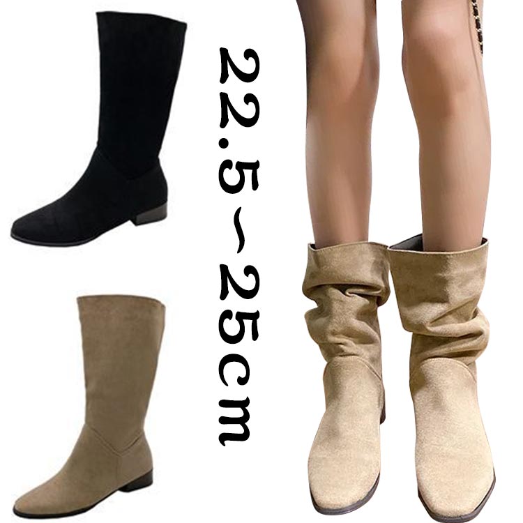 ミドルブーツ レディース ショートブーツ 靴 ブーティ スエード チャンキーヒール靴 レディース靴 ブーツ ルーズ