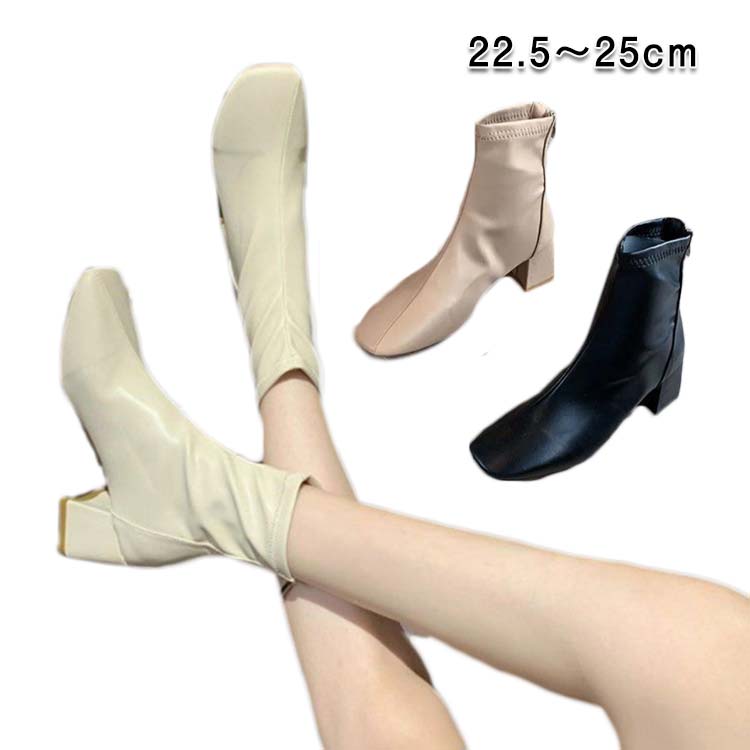 チャンキーヒール スクエアトゥ ショートブーツ ジッパー 靴 ブーツ 痛くない 柔らかい 6 レディース 太ヒール 秋冬