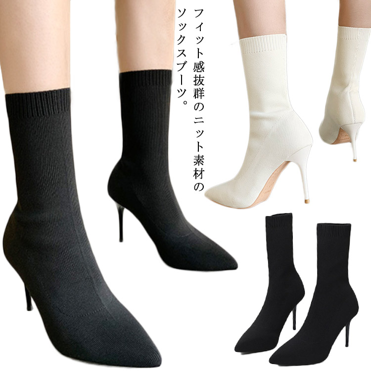 ソックスブーツ レディース ポインテッドトゥ ショートブーツ ピンヒール シューズ 靴 選べるヒール 7cmヒール 9cmヒール ストレッチ生地