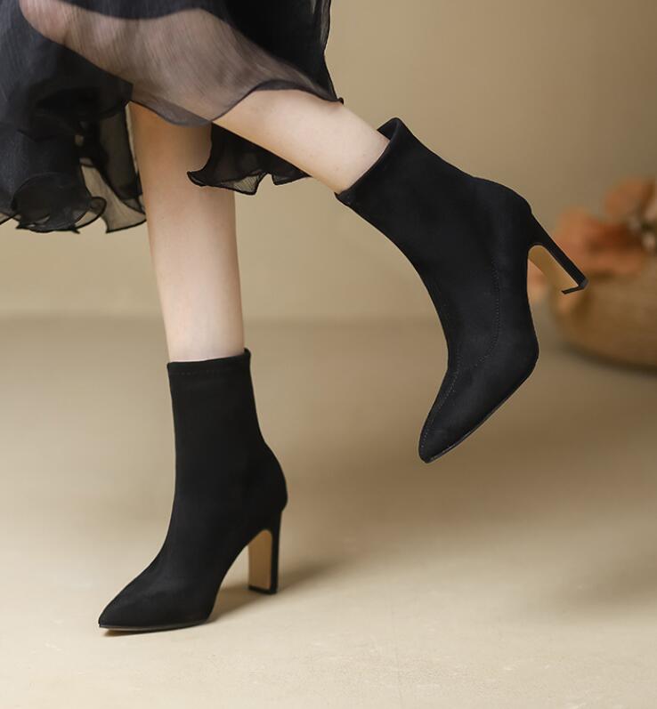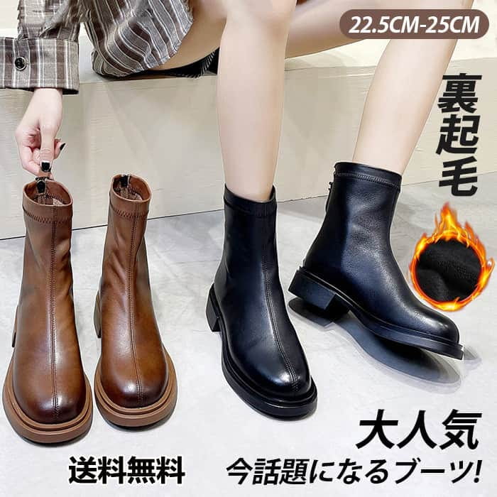 レディースブーツショートブーツソックスブーツ 美脚 ブーツ ローヒール 楽チン 痛くない 小さいサイズ スムース 細見せ 秋冬 疲れにくい