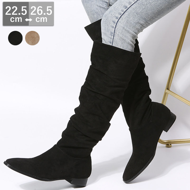 ロングブーツ レディース シューズ ブーツ ルーズ ジョッキー ロングブーツ ナウシカブーツ 靴 ローヒール 3cmヒール 22.5-26.5cm 筒丈32cm ポインテッドトゥ くしゅくしゅ シンプ