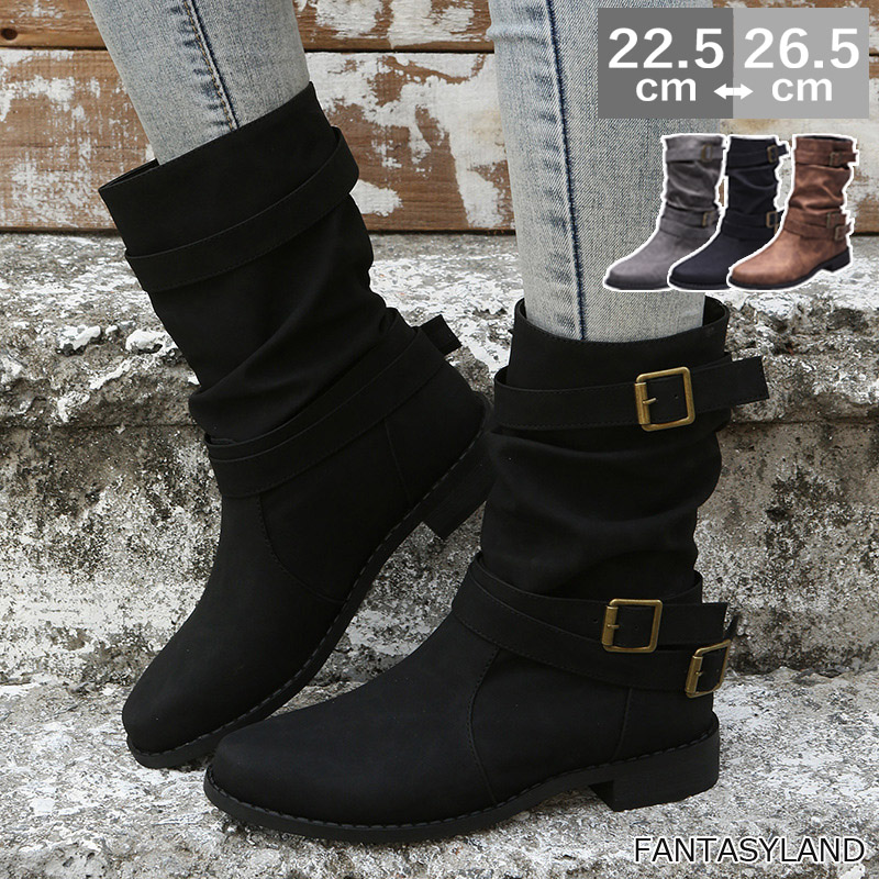 くしゅくしゅデザインが可愛い ロングゼラーのエンジニアブーツ ダブルベルトでお洒落度UP ちょっぴり厚底で歩きやすさとスタイルアップを両立