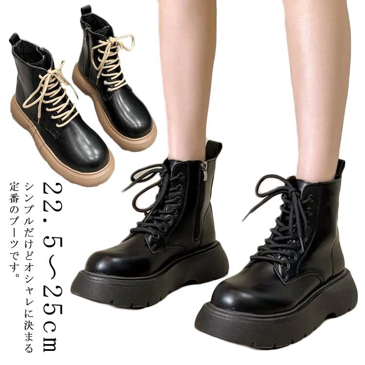 レディース レースアップブーツ 厚底 カジュアル サイドジップ ショートブーツ ブーツ 編み上げ靴 レディース靴 ブーツ ワーク