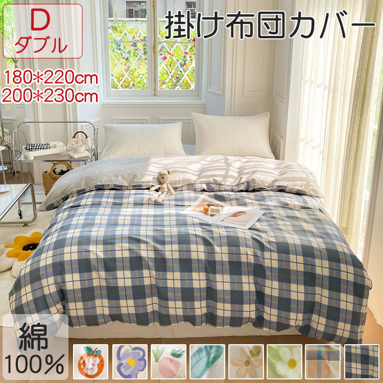 SD D 掛け布団カバー 綿100% 安眠 サラサラ 快適 セミダブル ダブル サイズ 180×220cm 200×230cm ロング コットン 柔らかい おしゃれ かわいい 引っ越し祝い プレゼント