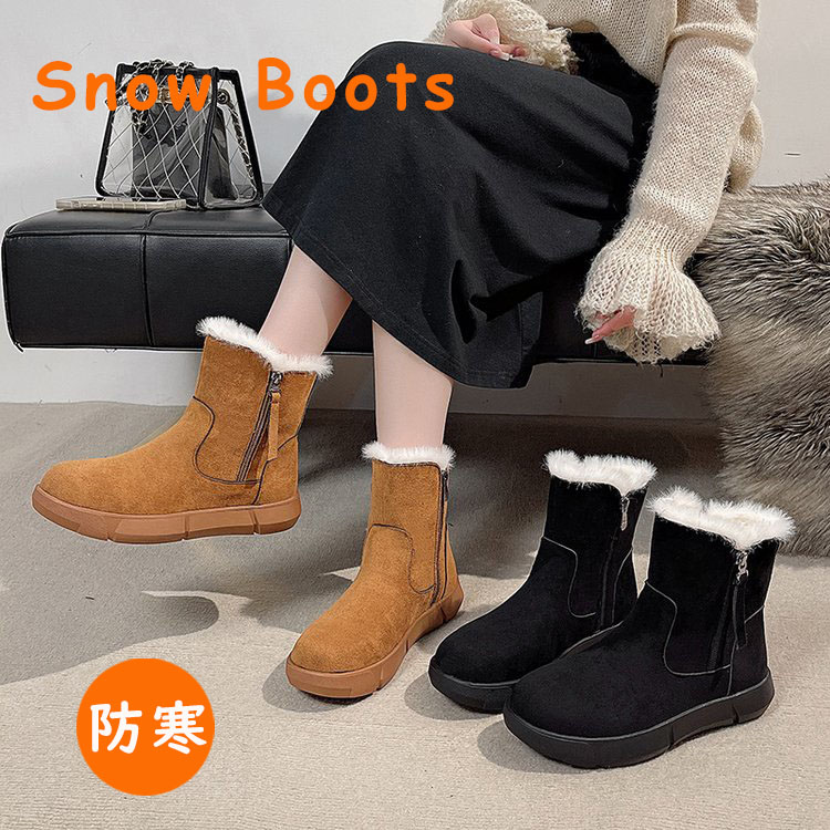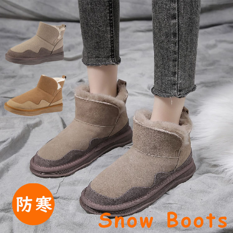 スノーブーツ レディース 冬用ブーツ 裏ボア 雪靴 防寒 無地 カジュアル ムートンブーツ ショートウィンターブーツ 裏起毛 脱ぎ履き便利