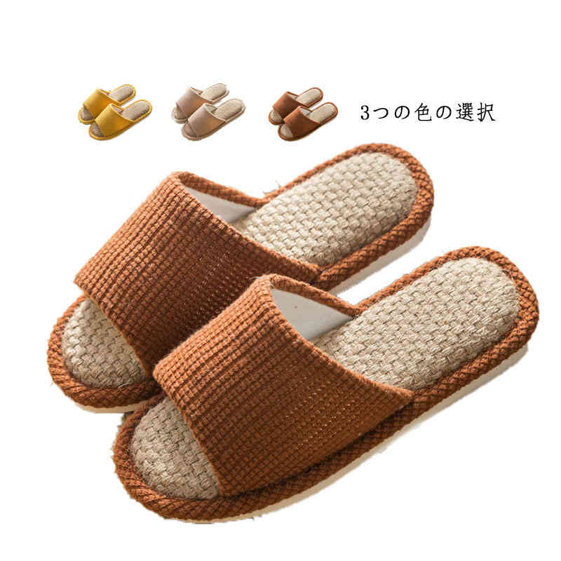 ルームシューズ リネン 亜麻 涼しい 前開き サンダル 静音 滑り止め 軽量 室内用スリッパ靴 レディース靴 その他