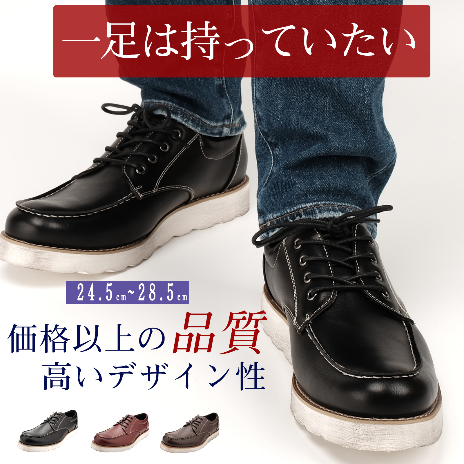 カジュアルシューズ メンズ シューズ メンズ 厚底 ブーツ スニーカー 革靴 メンズ 防水 軽量 幅広 3e プレーントゥ 外羽根 紐靴 紳士靴 おしゃれ