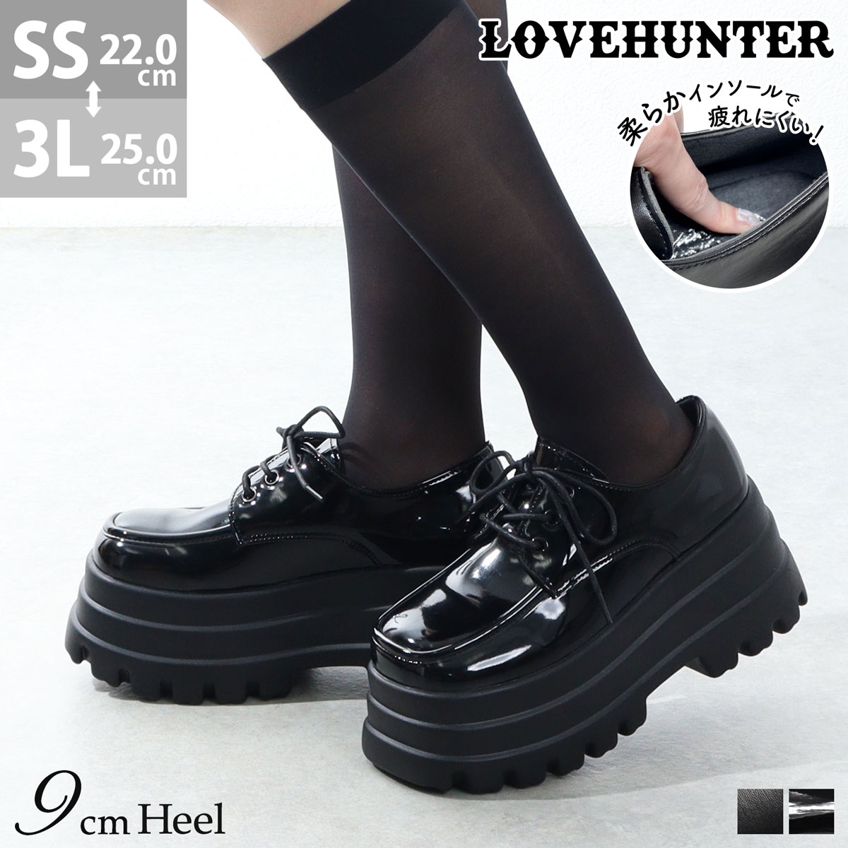 レディースシューズ 紐 靴 紐靴 おでこ靴 9センチヒール ボリュームソール スタイルアップ 地雷系