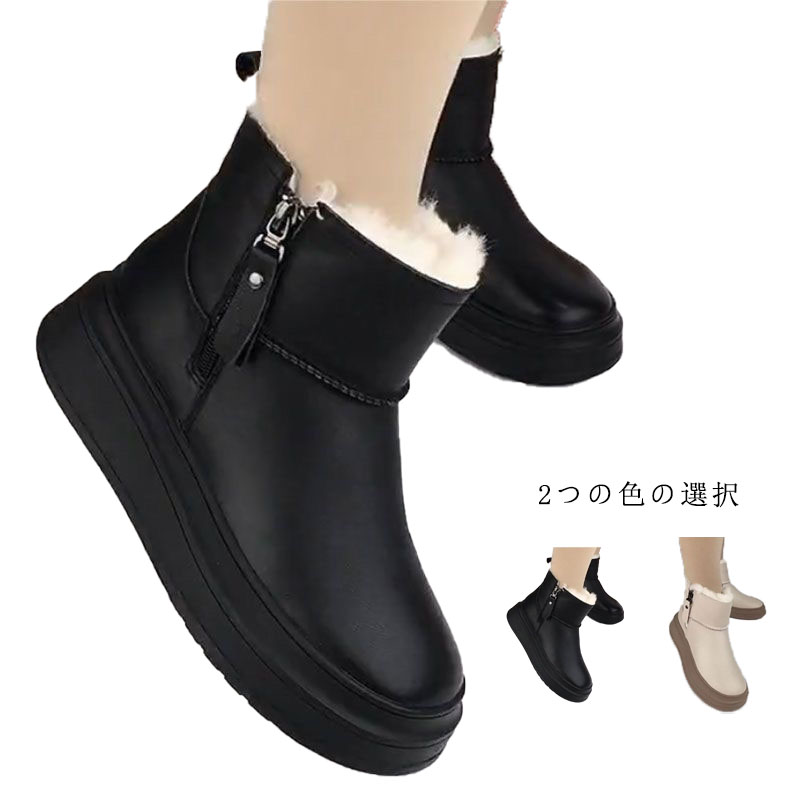 軽量 厚底 ムートンブーツ 疲れない 痛くない ショート ファー付き ボア 防寒 厚底ソール ショートブーツ