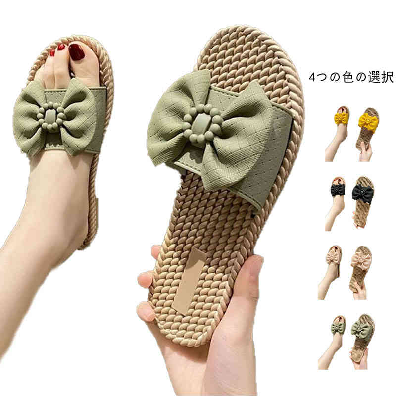 サンダル 靴 歩きやすい スリッパ ミュール リネン底スリッパ ペタンコサンダル リボン付き 夏 サマースリッパ スリッパ シューズ
