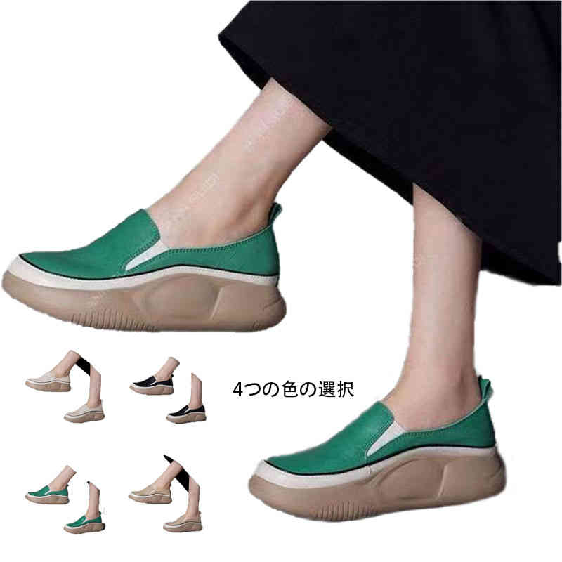 スニーカー スリッポン 軽量 外反母趾 シューズ 厚底スニーカー 軽い 厚底スリッポン 靴 ローヒール 厚底 厚底