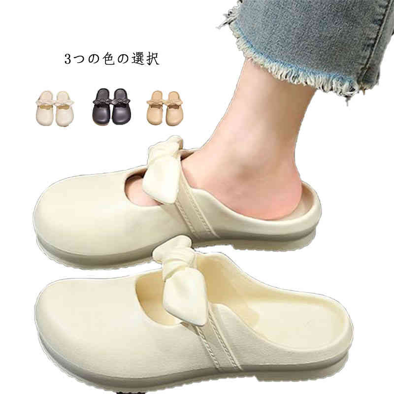 リボンシューズ シューズ かわいい スリッパサンダル リボンデザイン 婦人靴 スリッパサンダル 春夏秋