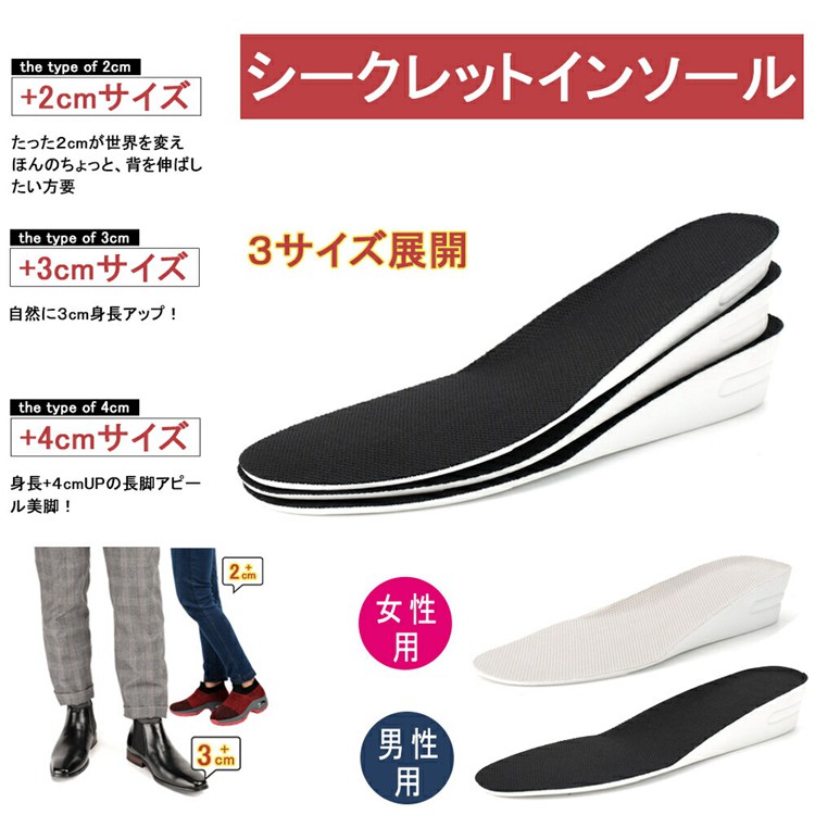 当店だけ ラテックス素材 2cm 3cm 4cm 身長アップ 身長UP クッション 中敷き シークレットインソール 身長アップ メンズ レディース
