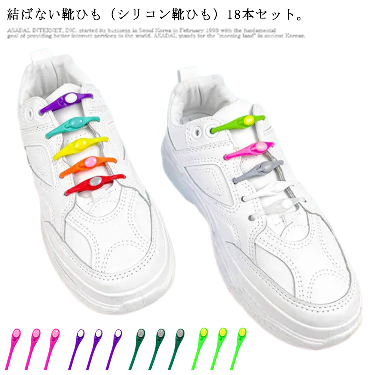 靴紐 靴ひも カジュアル 脱ぎ履き 18本入り シューレース 伸縮性 シリコン 大人用 子供用 フィット 使いやすい 伸縮性 ほどけない スニーカー 結ばない