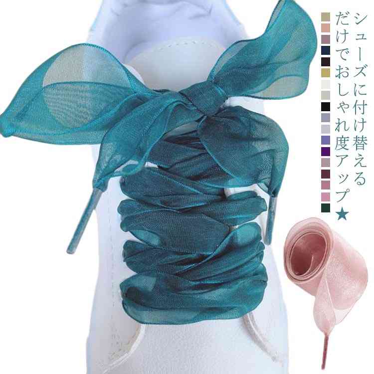 透け感 靴紐 リボン 幅広 幅広 靴 靴紐 靴ヒモ シューレース スニーカー 靴アクセサリー 靴ひも ふんわり ボリューム感 カラバリ豊富 おしゃれ アレンジ 文化祭 学園祭
