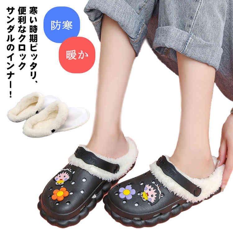 もこもこ気持ちい、冬でもあったか クロックサンダル インナー ボアフリース 防寒 暖か 洗える 22.5 23.0 23.5 24.0 24.5 25.0