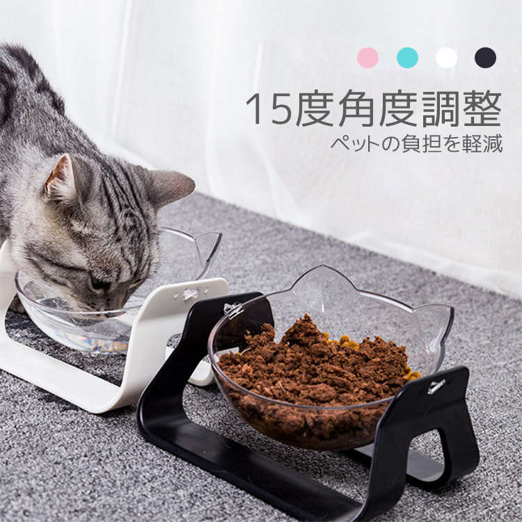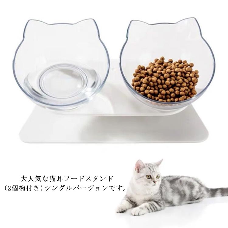 猫耳フードスタンド 2個ボウル ペット用 キャットフード入れ ペット食器 食べやすい 傾斜 餌 エサ 餌入れ フードボウル