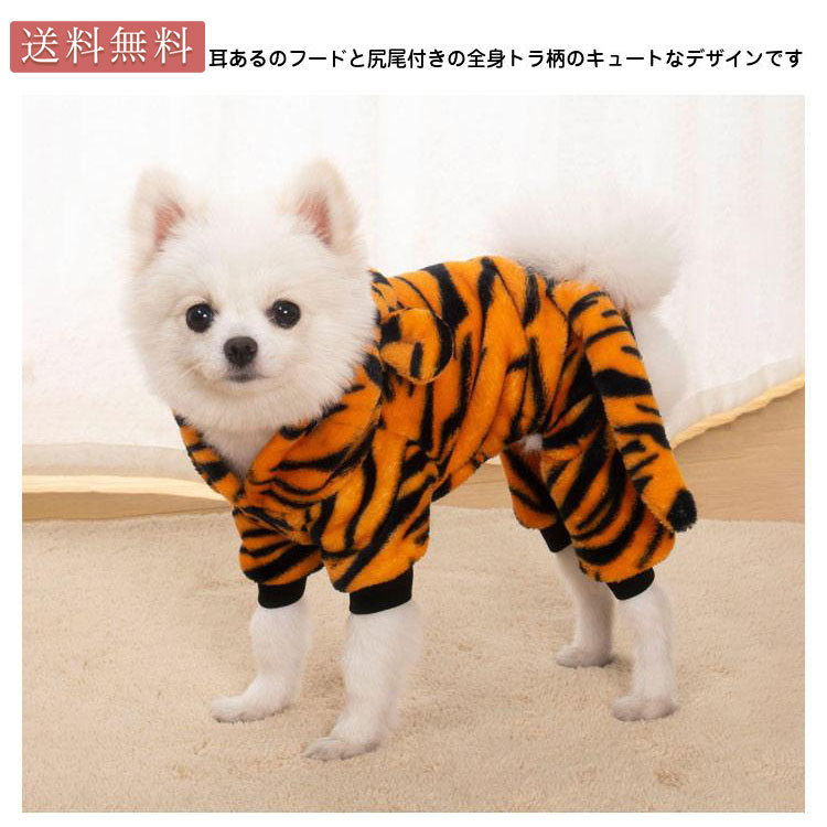 犬服 ドッグウェア 虎柄 フード付 コスプレ ハロウィン 抜け毛防止 ペット服 冬服 犬の服 サロペット ロンパース オーバーオール 裏起毛 コスプレ
