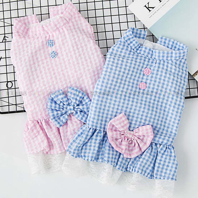 ペットウェア ワンピース 普段使い 公園 ペット服 犬の服 猫の服 犬用 猫用 洋服 ドッグウェア 袖なし チェック柄 格子柄 リボン おしゃれ