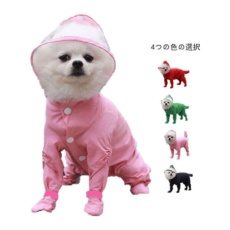 レインコート 犬雨着 レインウエア 透明フード 小型犬 ペット雨着 4脚タイプ フード付きレインコート 中型犬 防水