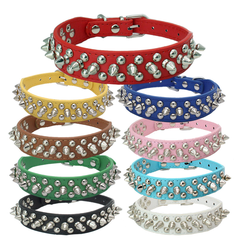 犬 猫 ペット 首輪 スタッズ トゲトゲ 5穴 調節 可能 小型犬 中型犬 大型犬 かわいい ワイルド おしゃれ