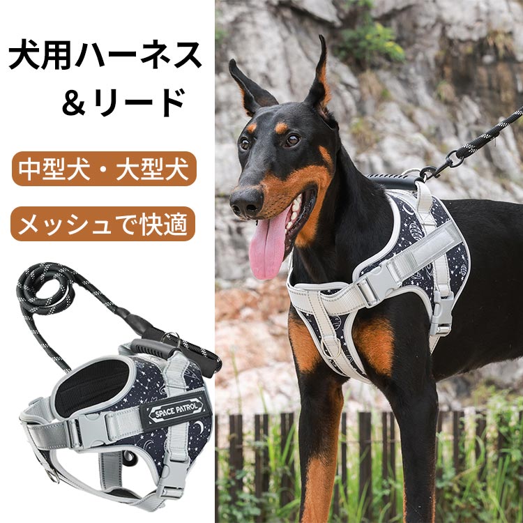 犬 ハーネス 犬用ハーネス 犬用リード+ハーネス 首輪 胴輪 中型犬 大型犬 抜けない ソフト 安全 簡単着脱 咳き込み軽減