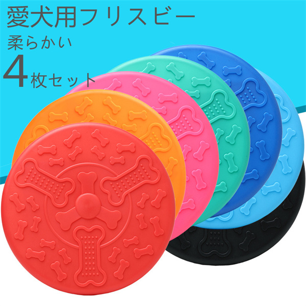 フリスビー 犬 おもちゃ 円盤 ワンちゃん 4枚セット 噛むおもちゃ ランダム色 ランダムカラー ペット 犬用フリスビー 遊び ストレス解消 柔らかい 投げる 運動 軽量