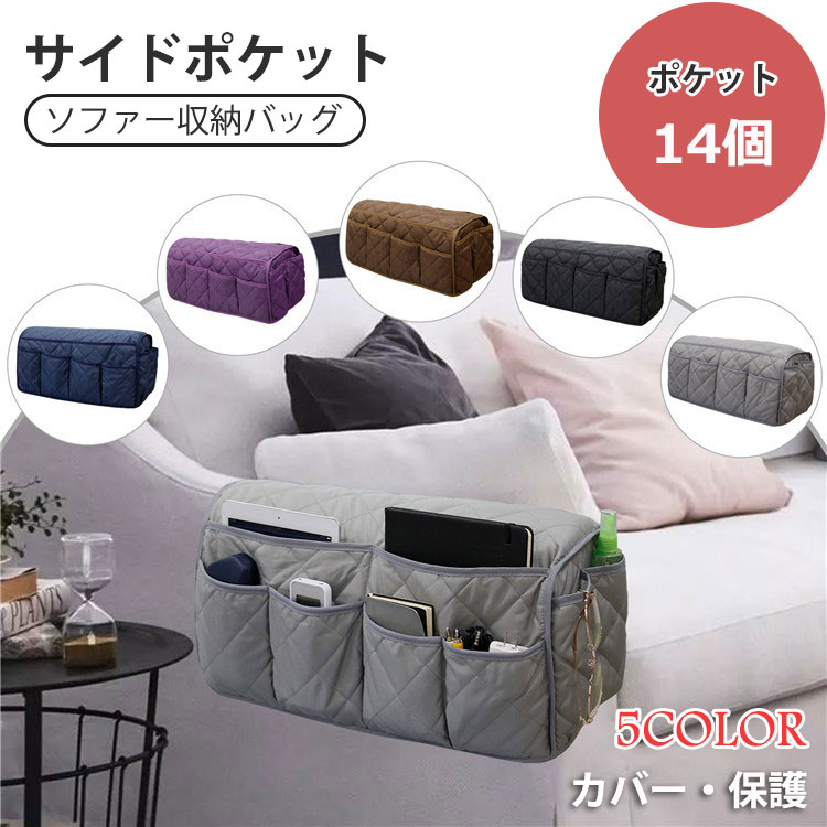 ソファサイドポケット ソファー掛け袋 ソファー肘掛けカバー 収納ポケット ベッドサイドポケット ベッド ソファ 防水 滑り止め 多機能 吊り下げ 防塵 犬猫対策 防止 汚れにくい 洗える ソファ収納バ