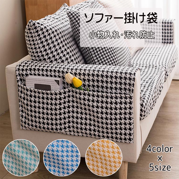 ソファー掛け袋 ソファサイドポケット シェニール 千鳥格子 ソファー肘掛けカバー 収納ポケット ベッドサイドポケット ベッド ソファ 多機能 吊り下げ 耐摩耗 防塵 犬猫対策 防止 汚れにくい 洗える